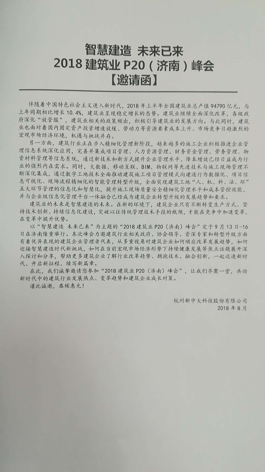 智慧建造 未來已來 2018建筑業(yè)P20(濟南)峰會 【邀請函】